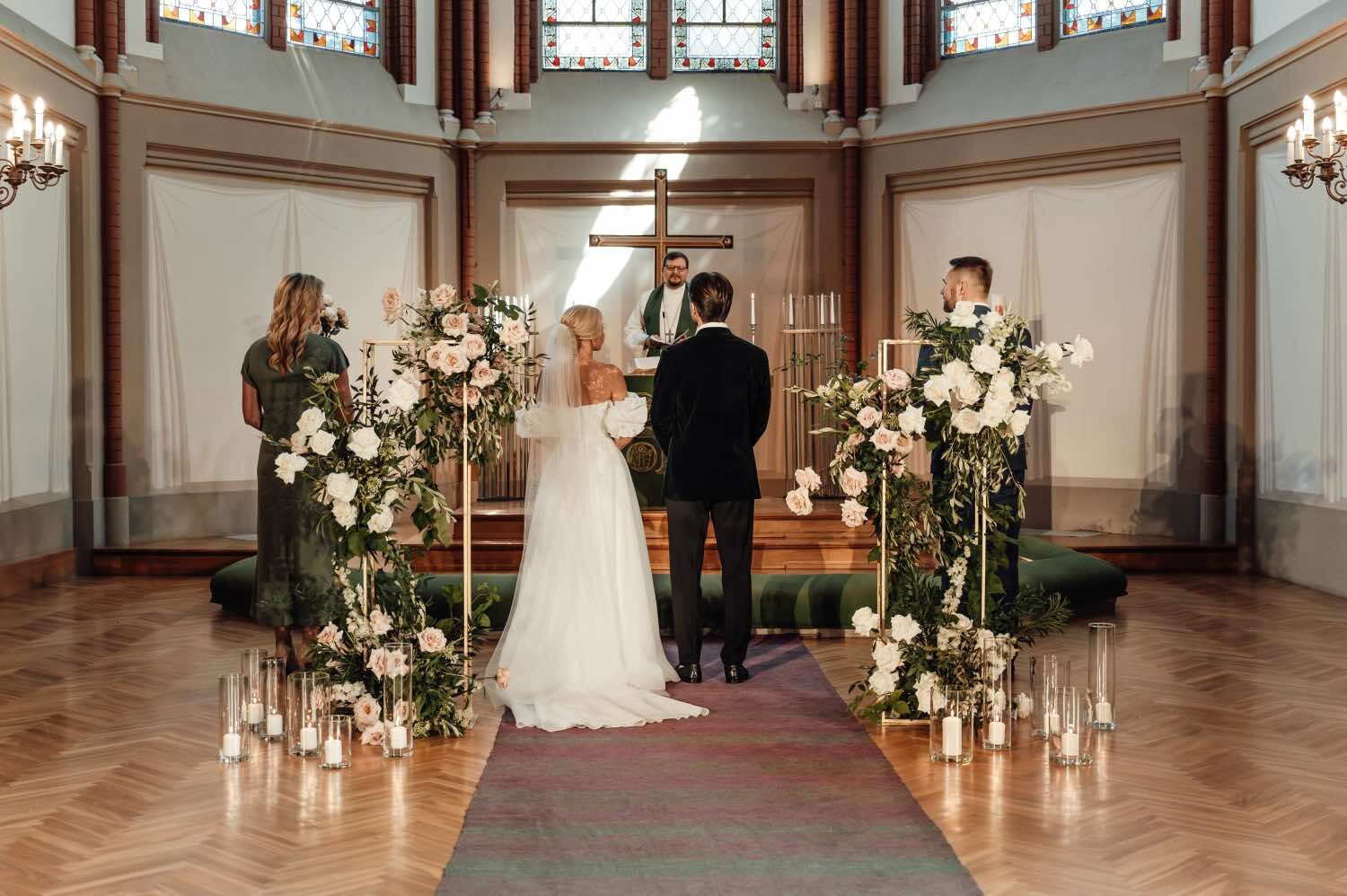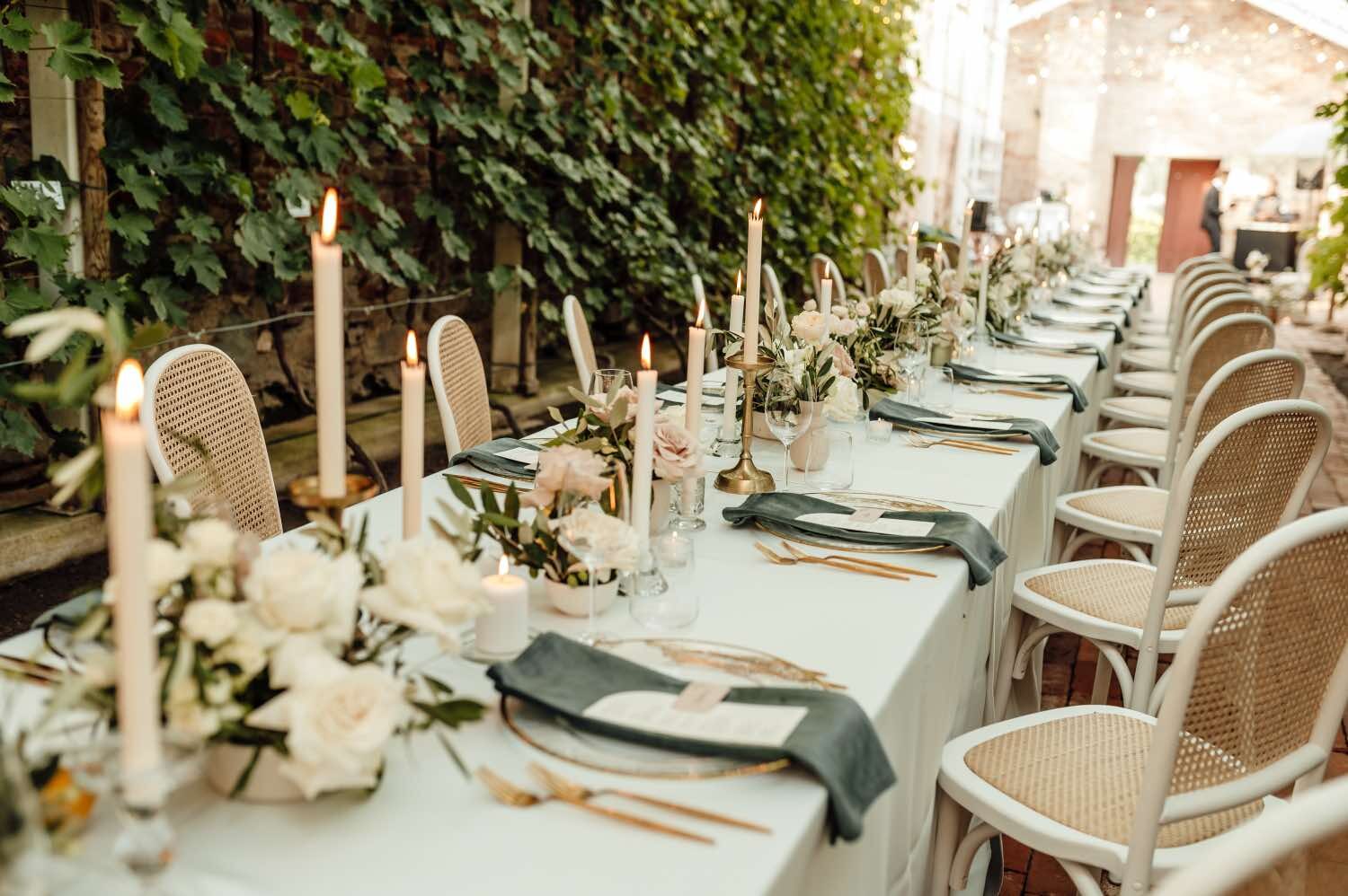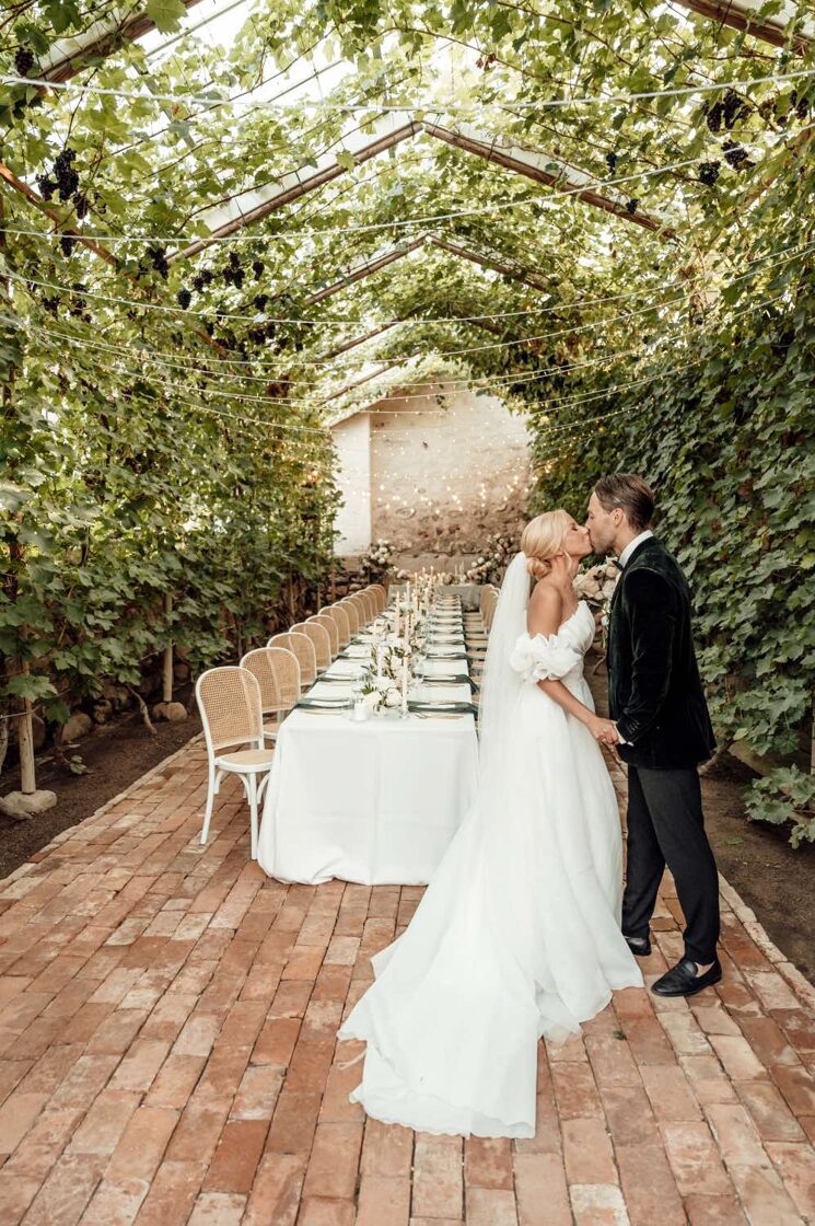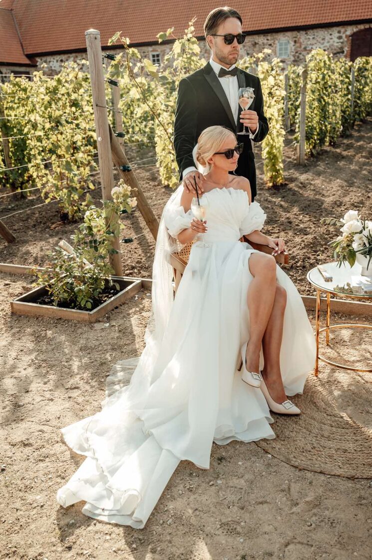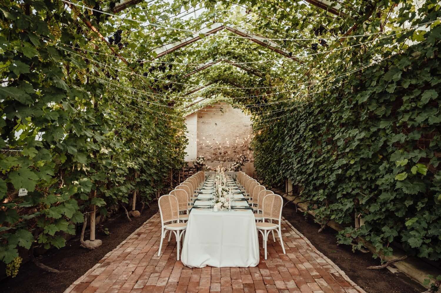 Romantiskas kāzas Vīna dārza noskaņās - jā, tas ir iespējams! Klasiska ceremonija skaistajā Torņkalna baznīcā, svinības Nurmuižas pilī, kur vīnogu dārzi un omulīgā oranžērija rada lielisku Itālijas noskaņu.
